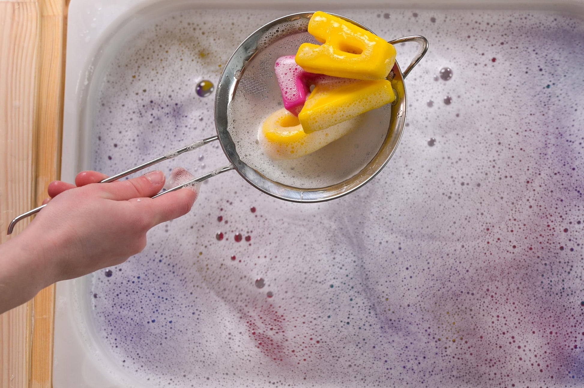 The alphabet pieces can be stacked as a tower or thrown in water allowing for endless ways to build, sort and explore!
