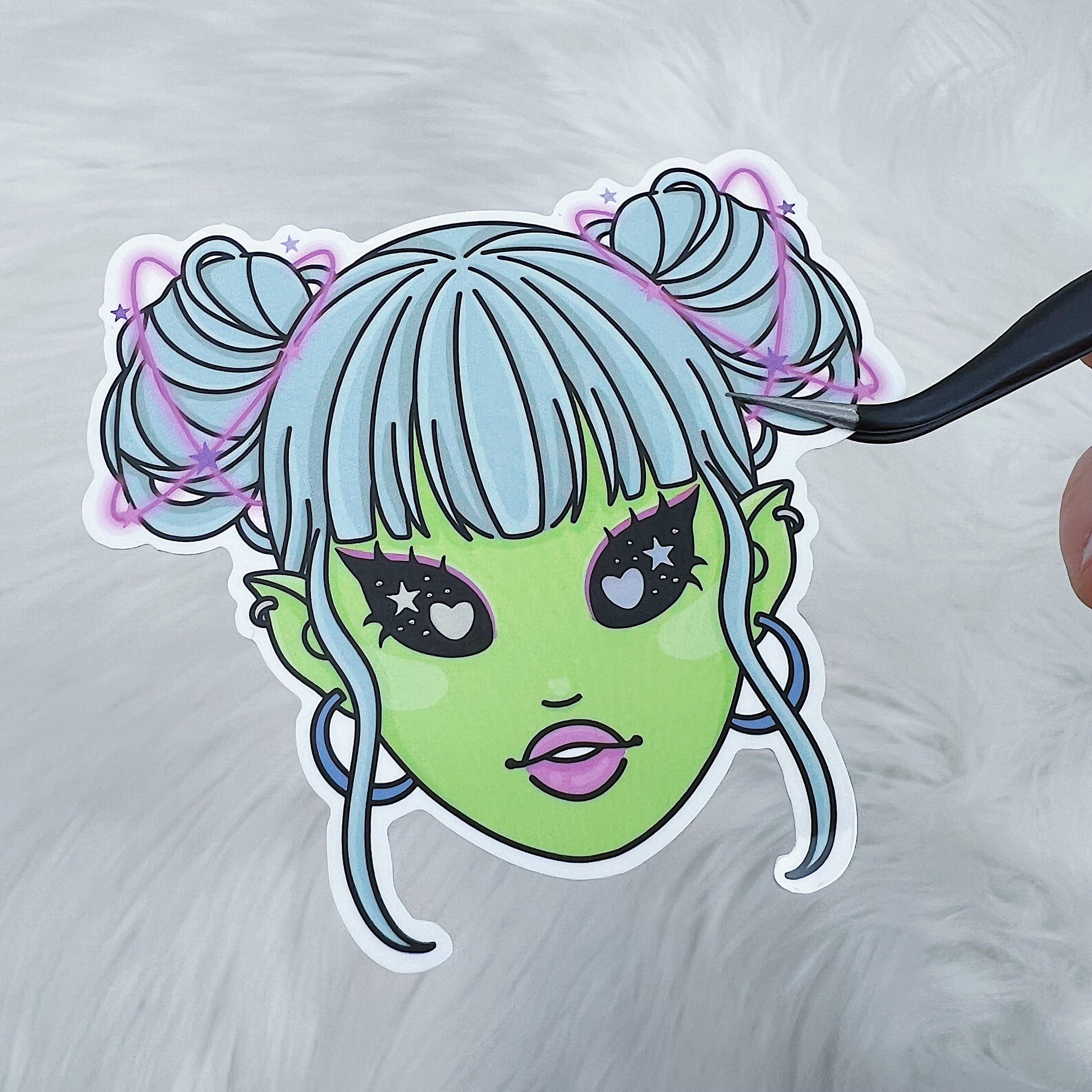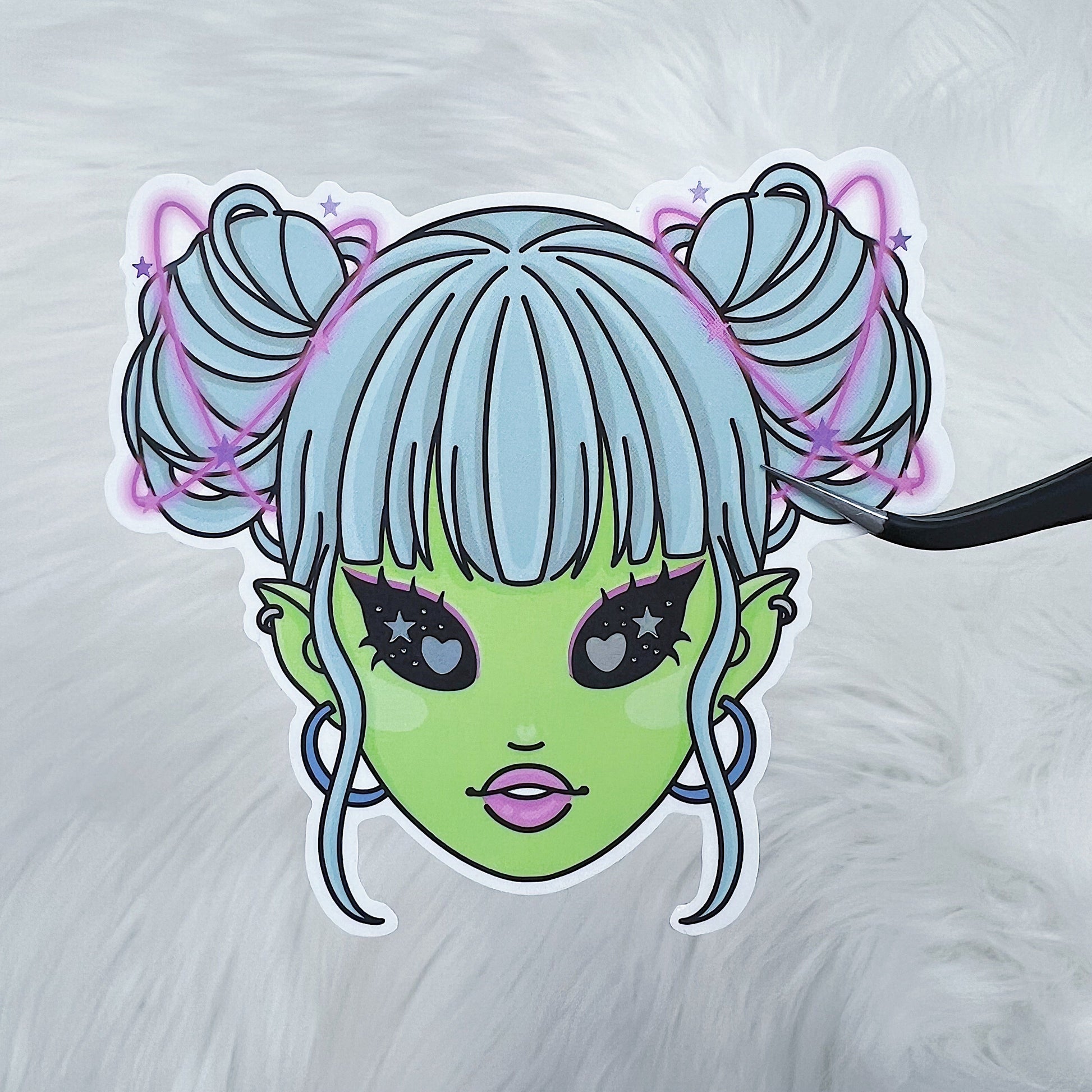 Alien Space Babe Vinyl Sticker Die Cut | Holographic Foiled