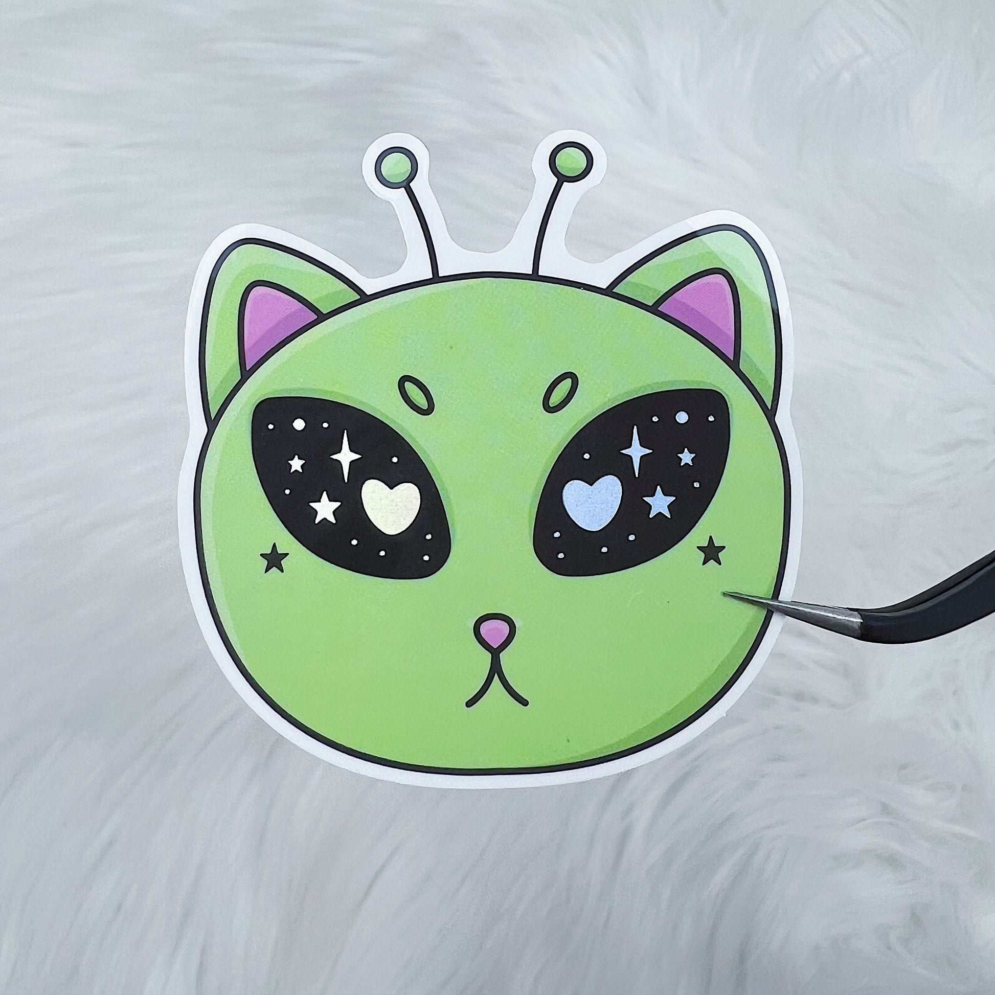 Alien Space Kitty Vinyl Sticker Die Cut | Holographic Foiled