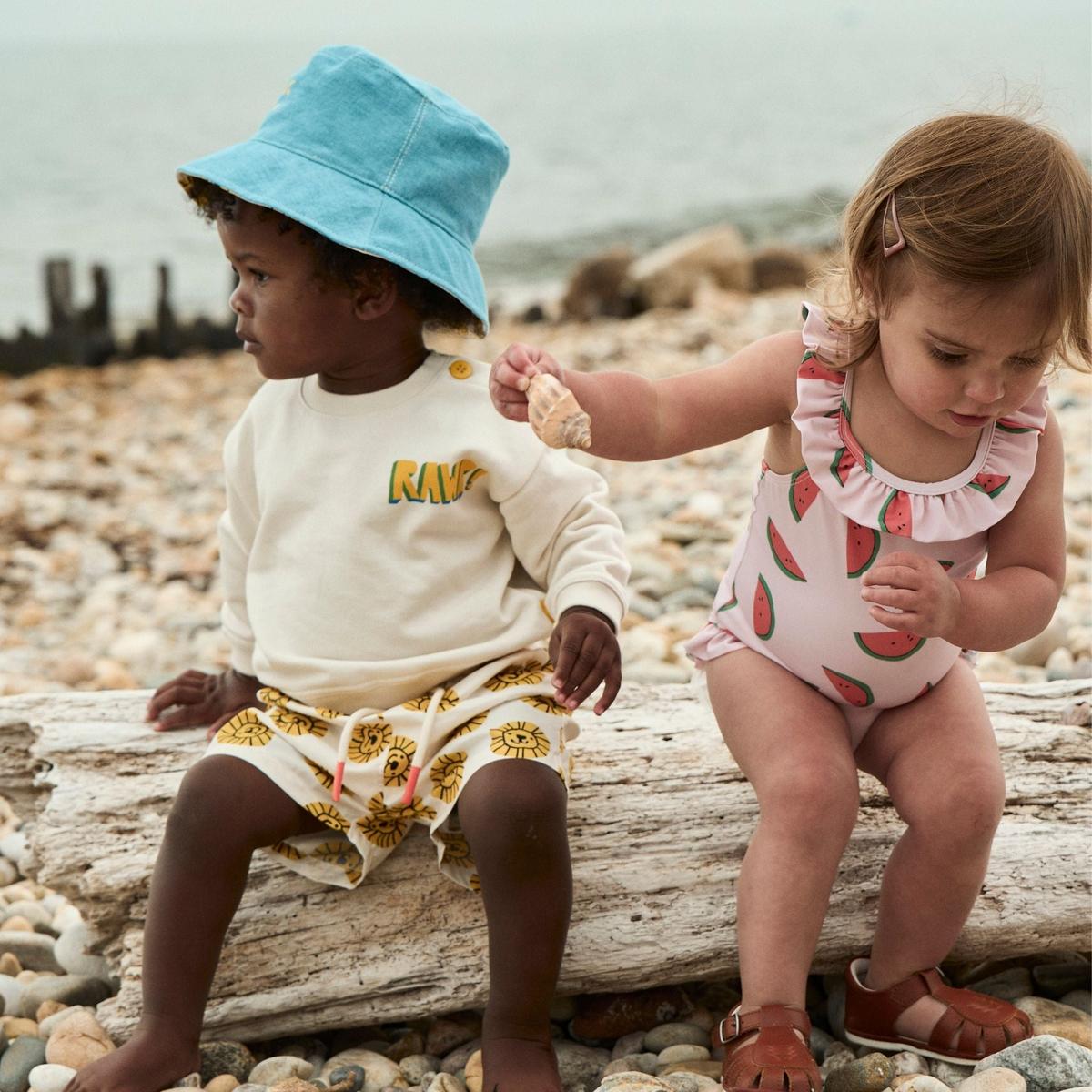 Responsibly made with recycled plastic bottles, our ruffle baby swimsuits are UPF+ 50 and chlorine resistant. Made with snaps underneath, it is an easy pull-up, to allow comfort and protection while playing in the sun. This style fits true to size, please refer to the size guide. For each purchase 1% of the sale goes to the restoration of the natural environment. Made in Portugal.
